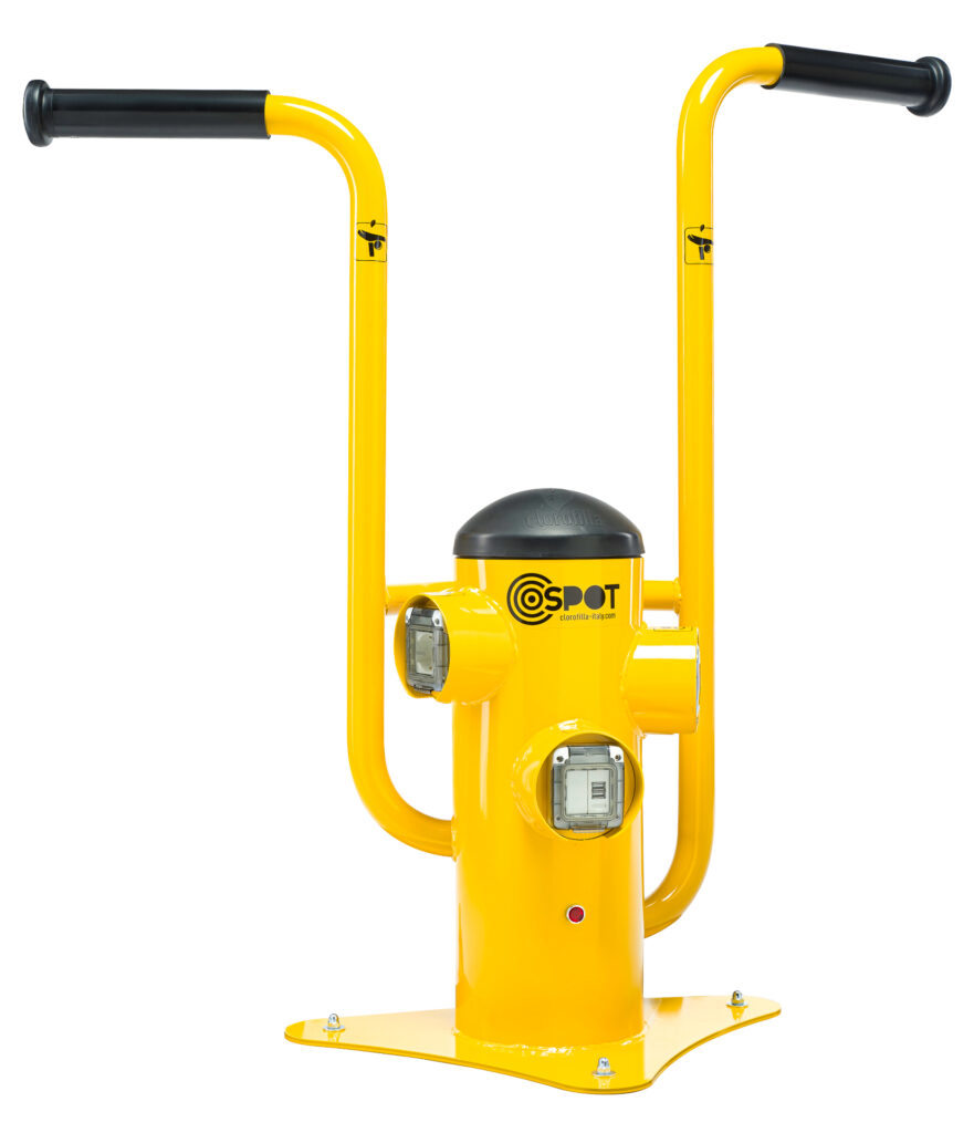 Idealisk för servicepunkter utan elektricitet på cykelvägar eller parker. Utrustad med fotpump, gummerade cykelarmar och utdragbara kablar.